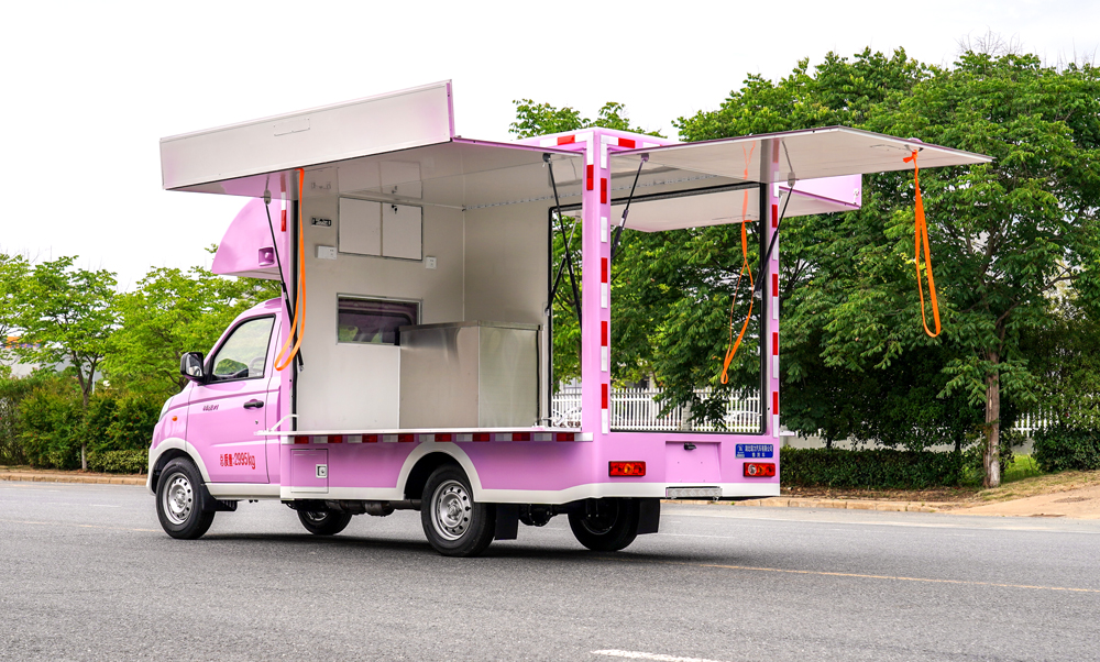 不同于传统的固定补给点,瑞力售货车凭借其紧凑的车身与灵活的机动性,化身为赛道的“移动关怀点”。其货厢采用气动伸缩杆实现三面全开,瞬间变身一座功能齐全的“清凉驿站”。